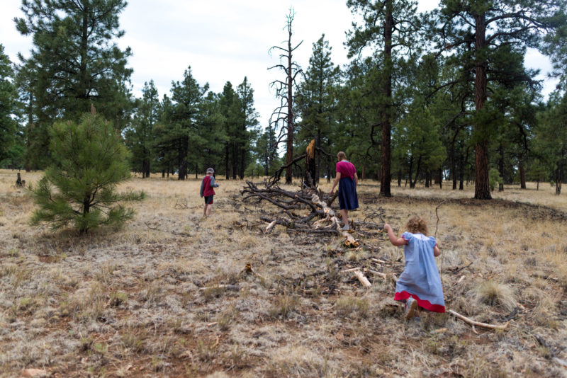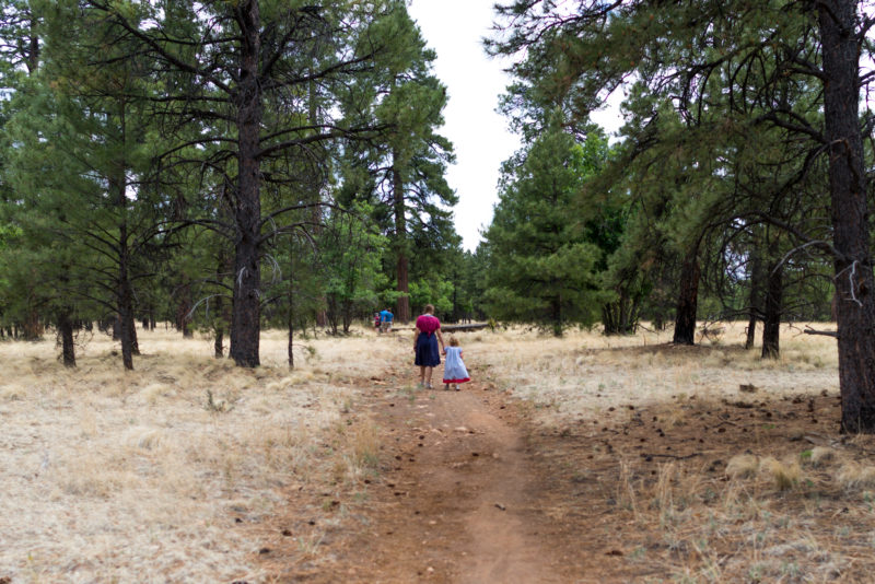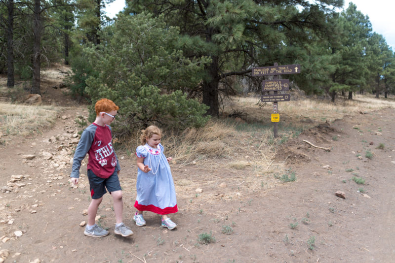 After the fourth of July parade, we had a beautiful afternoon free. At lunch, we searched for options for an easy hike. We had the stroller for Sebastian, so I needed it needed to be packed dirt trail loops for it to work for everyone. We found the Campbell Mesa Loop Trails online, read the reviews, and set off for an adventure.