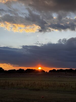 I gazed out the window – the sun beginning to set over the huge green pasture.