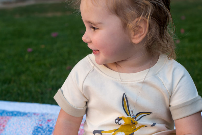 We talked to her about not pulling on the chain and that she isn’t allowed to sleep with it on, and each night she sits patiently while we take it off. It has been so sweet to see her gently touch it from time to time during the day. Knowing that this will be a sweet memory for Nate made my heart swell.
