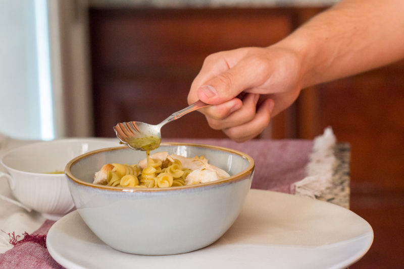 - Cut the chicken and serve over the pasta