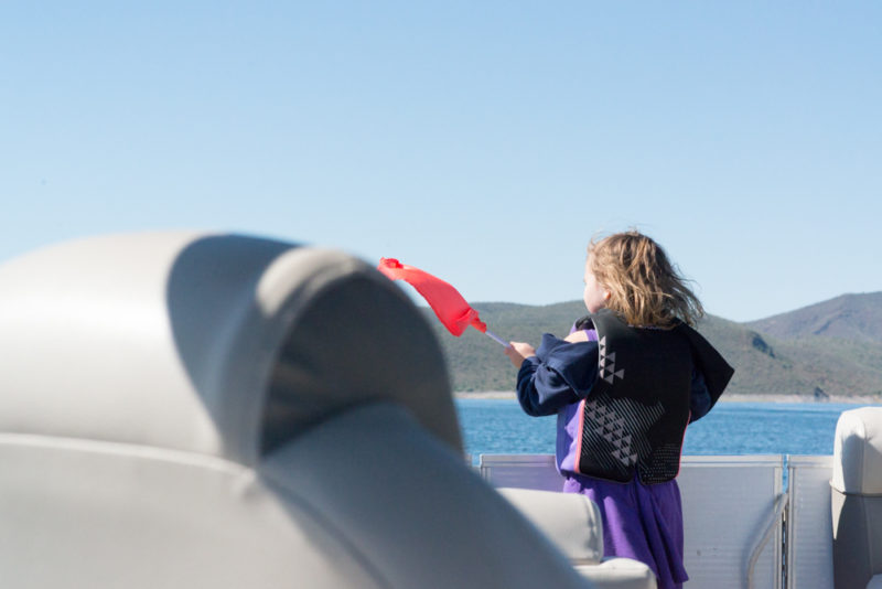 Julia, my oldest, flew in from college the day before and we couldn’t wait to spend the day with her! We wanted to hear every detail about her classes and her friends. I was worried about Mary Alice’s broken arm and if she would be disappointed that she would not be allowed to swim, but the staff at the rental office gave her a very important job. She was to be the flag waver anytime anyone on the boat was in the water. They were so fantastic with her and she took her role so seriously. I love when staff is great with kids. It makes the day even better!