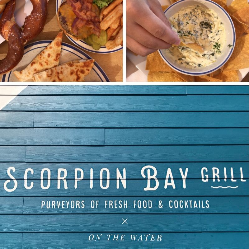 After we pulled into the dock, we walked over to Scorpion Bay Grill. It was incredibly family friendly and so delicious! Boats were pulling up, families were cheering for their favorite teams and watching the games, and my kids were wandering back and forth between their meals and the giant Jenga game in the corner. There is no additional fee to eat at the grill. You are welcome to enjoy the food and the view anytime!
