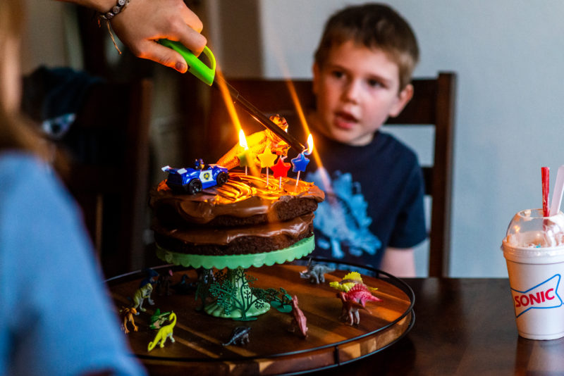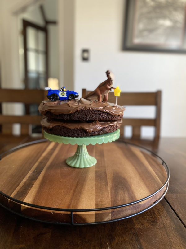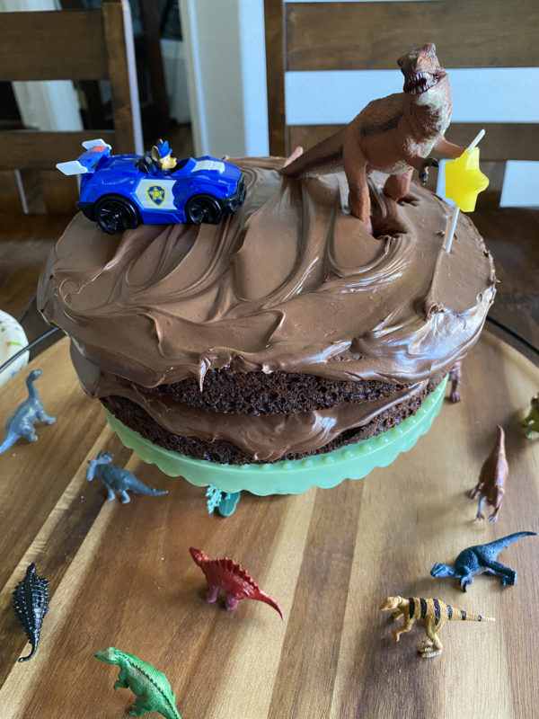 Nate and his roommate were here for spring break and that made Sebastian’s birthday week absolutely perfect. Hours on the trampoline and a birthday cake just like he wanted it: 2 chocolates with Chase (from Paw Patrol) chasing a dinosaur chasing a shooting star.