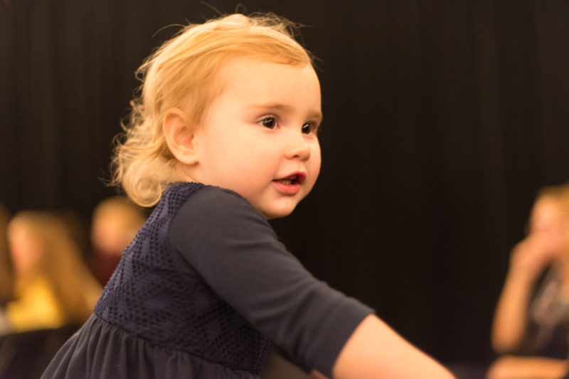 I took her into the bathroom and was met by understanding moms and sweet friends. I thought I might be able to save the dress, but as I lifted it up, I realized the mud went all the way up her back to her hair. After joking about how thankful we were that it wasn’t poop, we all laughed as we washed her off in the sink and wrapped her in a friends swaddling blanket. Thankfully, Riley had worn his sweater that night, so she spent the rest of the evening in a very stylish sweater dress.