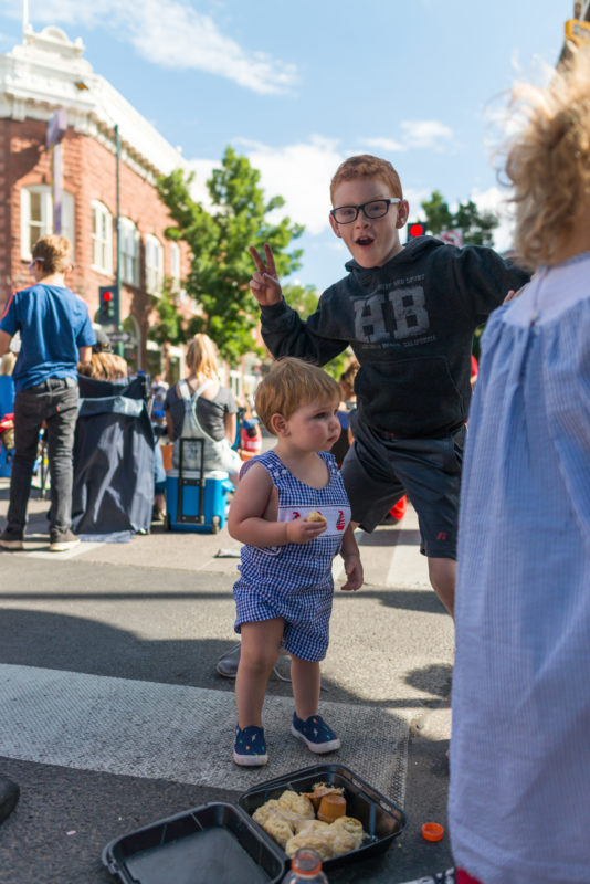 We found our perfect corner and waited for the parade. We made friends with those around us and hollered loudly when the police motorcycles started the procession. We clapped and screamed when the officer did back flips down the street and reminded kids to stay away from moving vehicles.