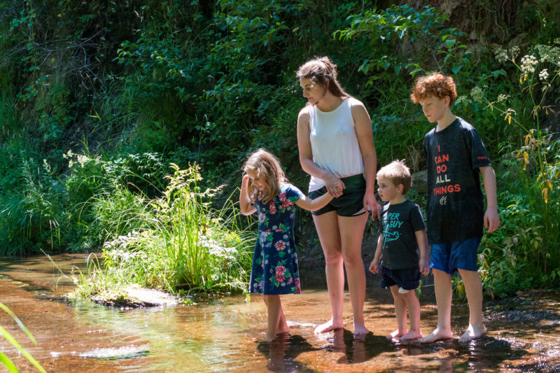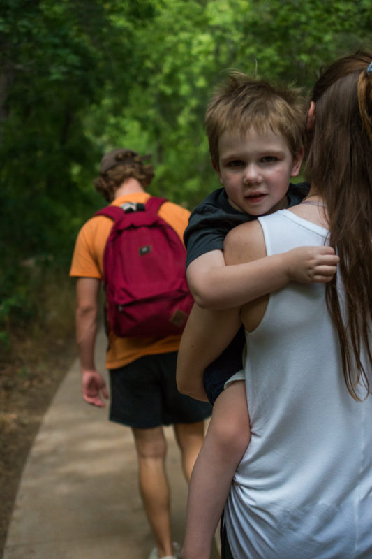 There is nothing better for our family than to pile in the car and go exploring. Wandering around His creation and sharing it with one another is our recipe for an amazing day. The hike was mostly shaded and the little ones did fantastic! We headed back to the bridge that we crossed at the beginning of the trail and walked down towards the creek.